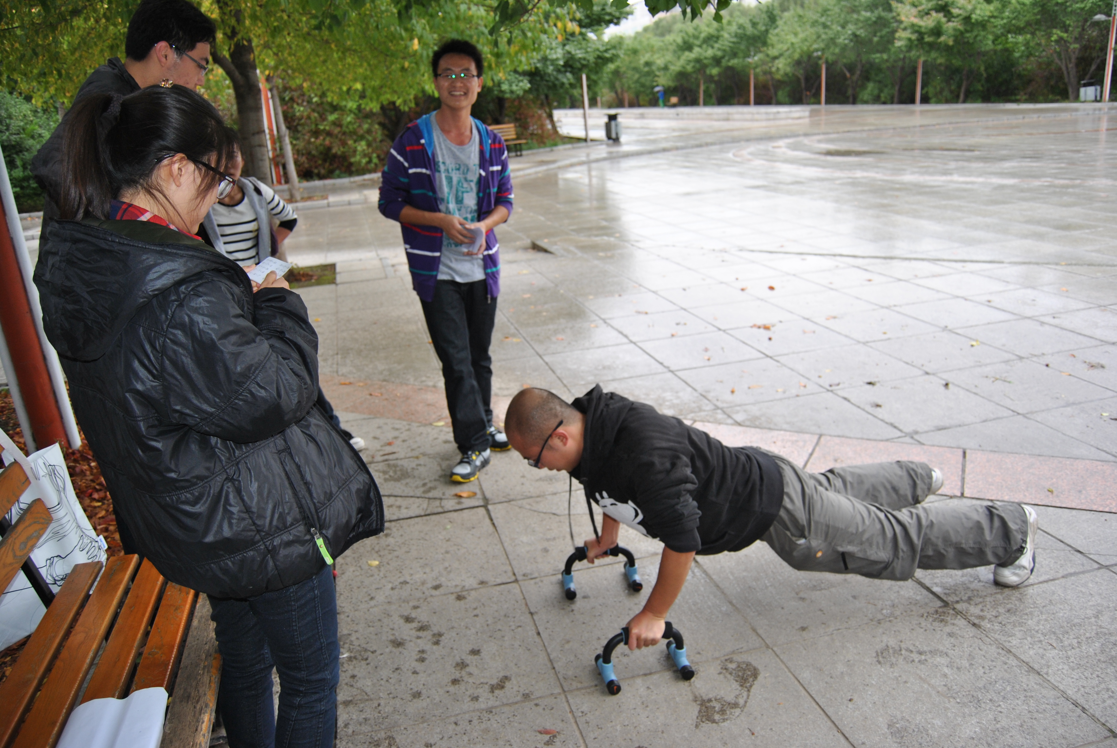 研究生会的工作人员做了大量的准备工作。从地点的选择到地点游戏的设定,从地图地标的制作到活动现场的规划。23日下午两点本次活动在计算机大楼正式拉开帷幕,来自各班级的13支参赛队伍早已做好准备。天空飘落的雨滴没有丝毫减弱同学们的热情,道路的泥泞也没消解同学们的积极性。工作人员宣读比赛规则并下发地图,队员们以小组为单位以最快的速度规划了路线的选择。当工作人员宣布比赛开始后就以迅雷不及掩耳之势迅速奔向地图所示的起点处,整个校园随处可见同学们相互鼓励、积极搜寻的身影。经过紧张激烈的奔跑和寻找,第一支队伍在42分钟后结束了10个点定位的定向越野,回到了起点位置,接下来的队伍也陆续完成了比赛。随后对参赛队员进行了颁奖活动,整个比赛在同学们意犹未尽的讨论中圆满结束。
