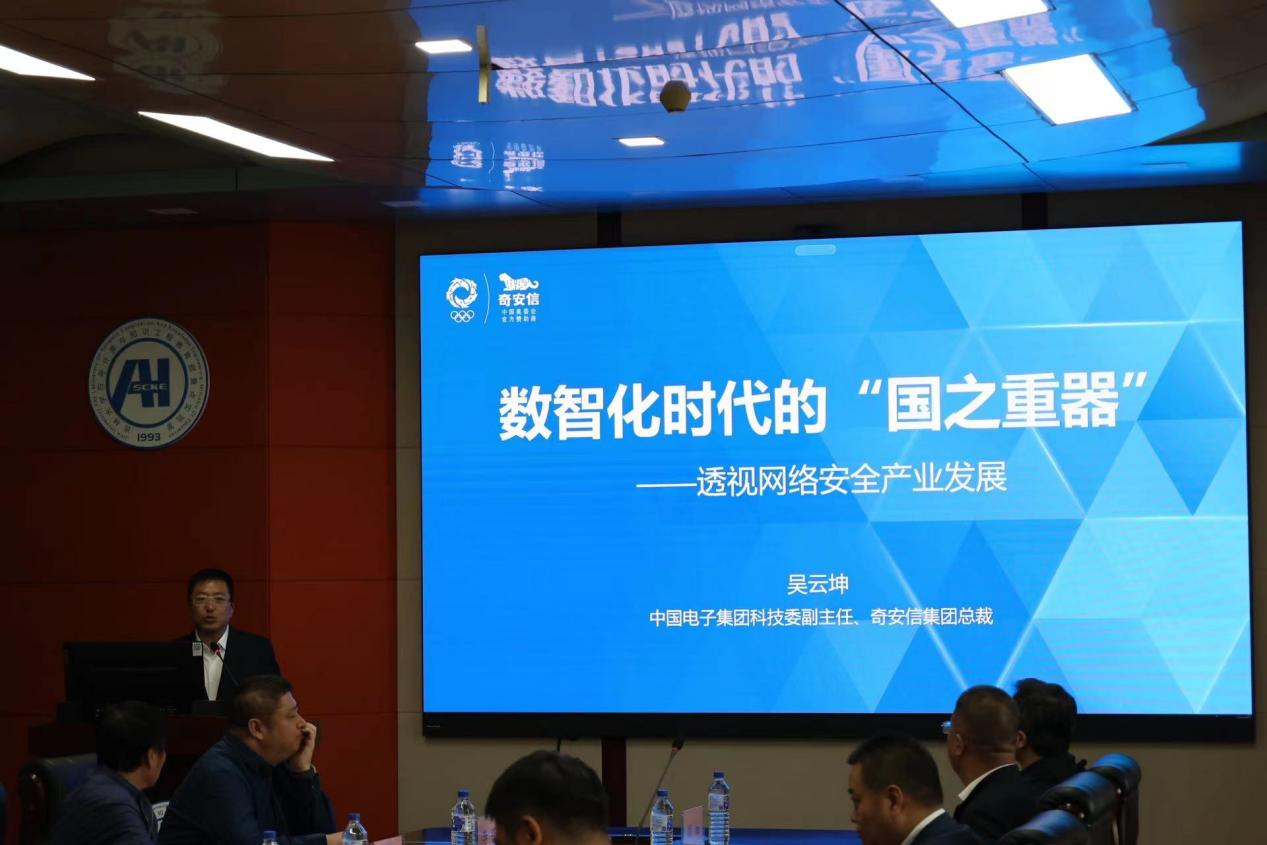 在会谈中,冯正玉对吴云坤一行表示热烈欢迎,并代表学校向奇安信集团近年来的快速发展表示祝贺,向奇安信集团为国家安全事业做出的重要贡献表示敬意,向奇安信集团对校企合作事业的鼎力支持表示衷心感谢。吴云坤向冯正玉介绍了近年来奇安信集团的发展历程,简述了欧洲杯
