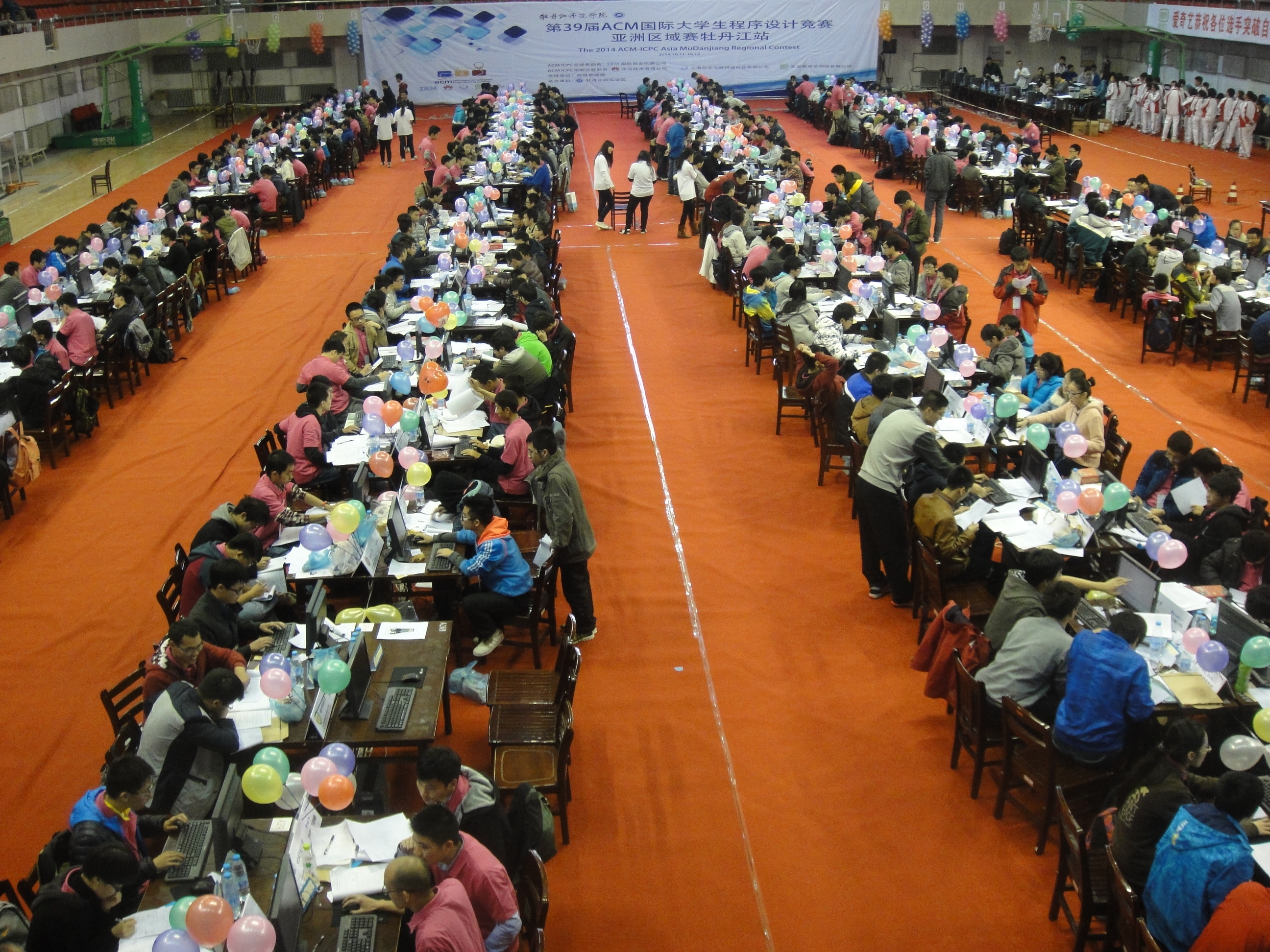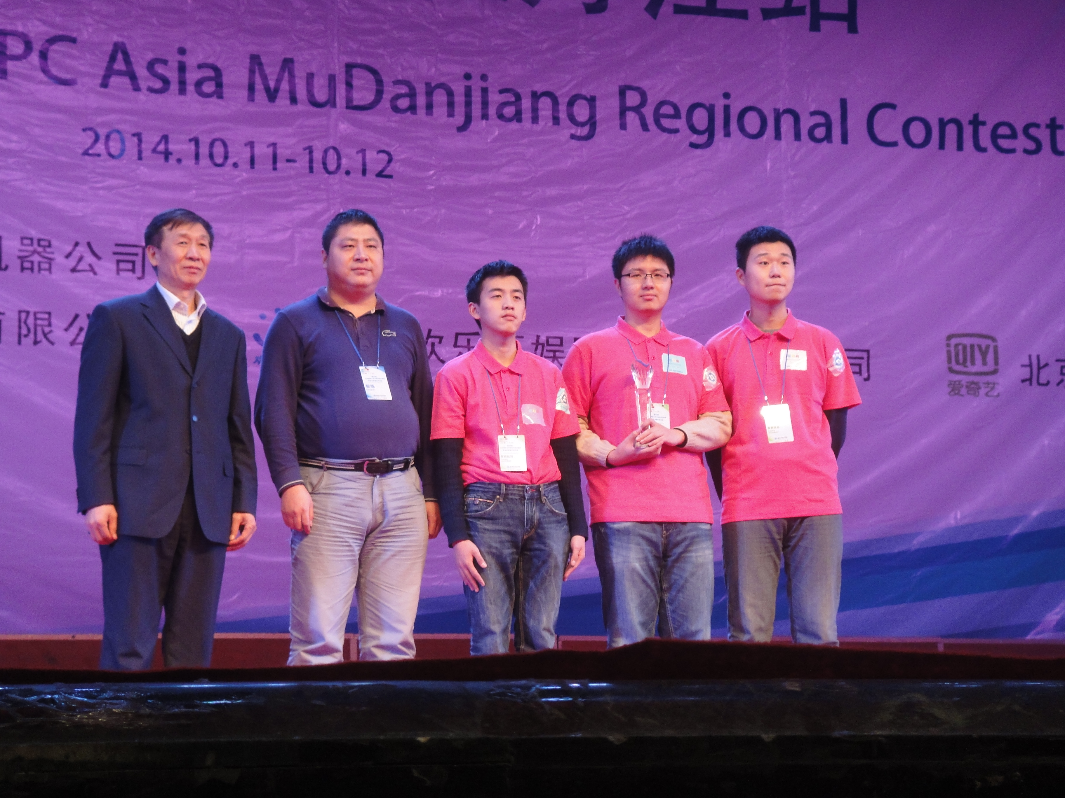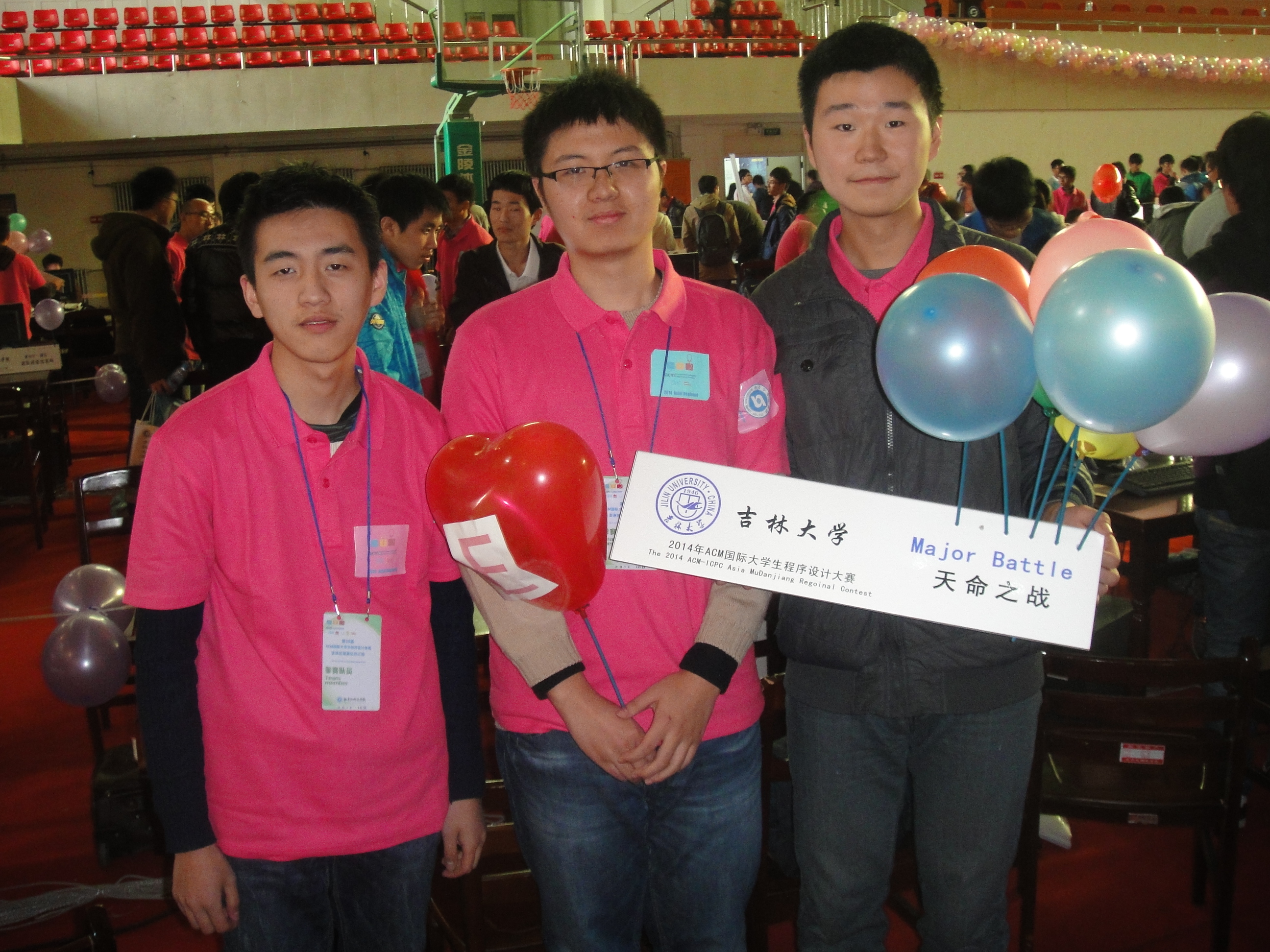 第39届ACM-ICPC国际大学生程序设计竞赛亚洲区域赛牡丹江站比赛于2014年10月11日至12日在牡丹江师范欧洲杯举行。清华大学、北京大学、复旦大学、国防科技大学、哈尔滨工业大学等91所高校的154支参赛队参加了该站的比赛。经过激烈的角逐,由我校计算机欧洲杯2013级本科生唐家铭、2012级本科生陈海敏和软件欧洲杯2012级本科生药剡组成的“天命之战”队力拔头筹,率先解出7个题目,名列第1名,获得冠军。